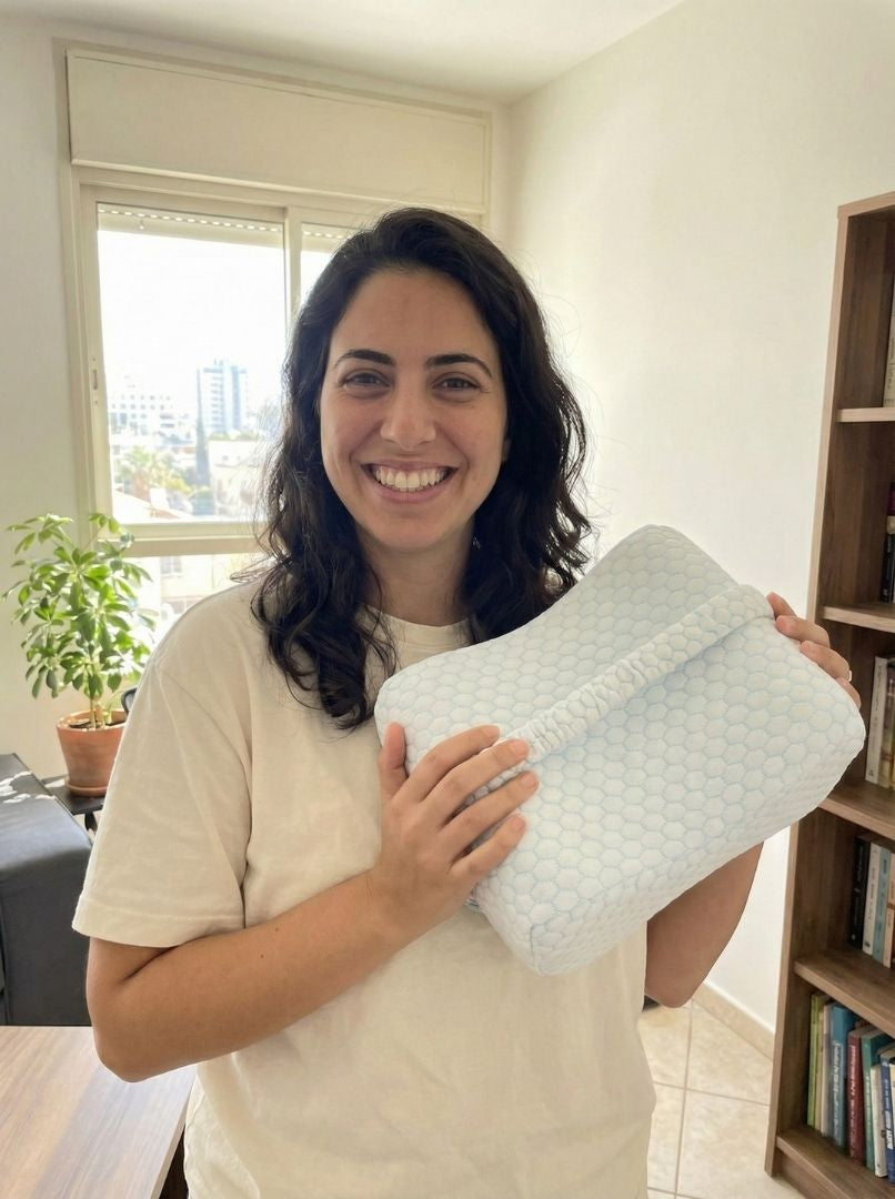• “לא ידעתי כמה אני צריכה כרית לברכיים עד שניסיתי. בתור מי שישנה על הצד עם כאבים בירך ובגב זה שינוי של ממש”