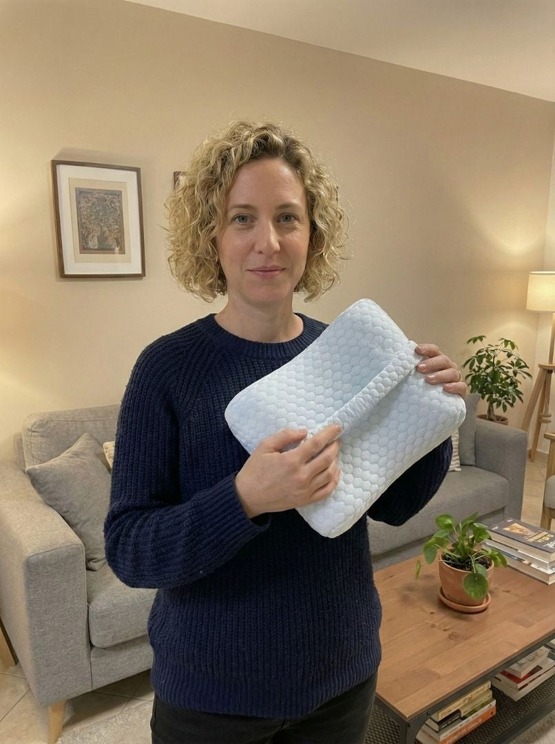 • “ניסיתי שנים כריות רגילות וזה תמיד החליק או ברח החוצה. הכרית הזאת סוף סוף נשארת במקום ופשוט מיישרת את הגב”