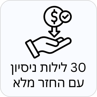 מהרגע שהמוצר מגיע אליכם פיזית, יש לכם 30 לילות לנסות אותו.